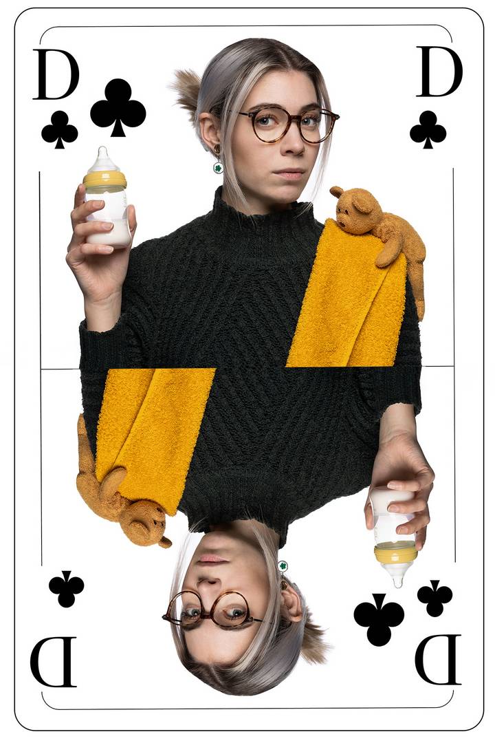 So steht das Symbol der Herzdame heute für die Liebe. Die Karodame halt keinen Pflasterstein mehr, sondern ein Handy in der Hand. Die Kreuzdame steht für die Mutterrolle der Frau.